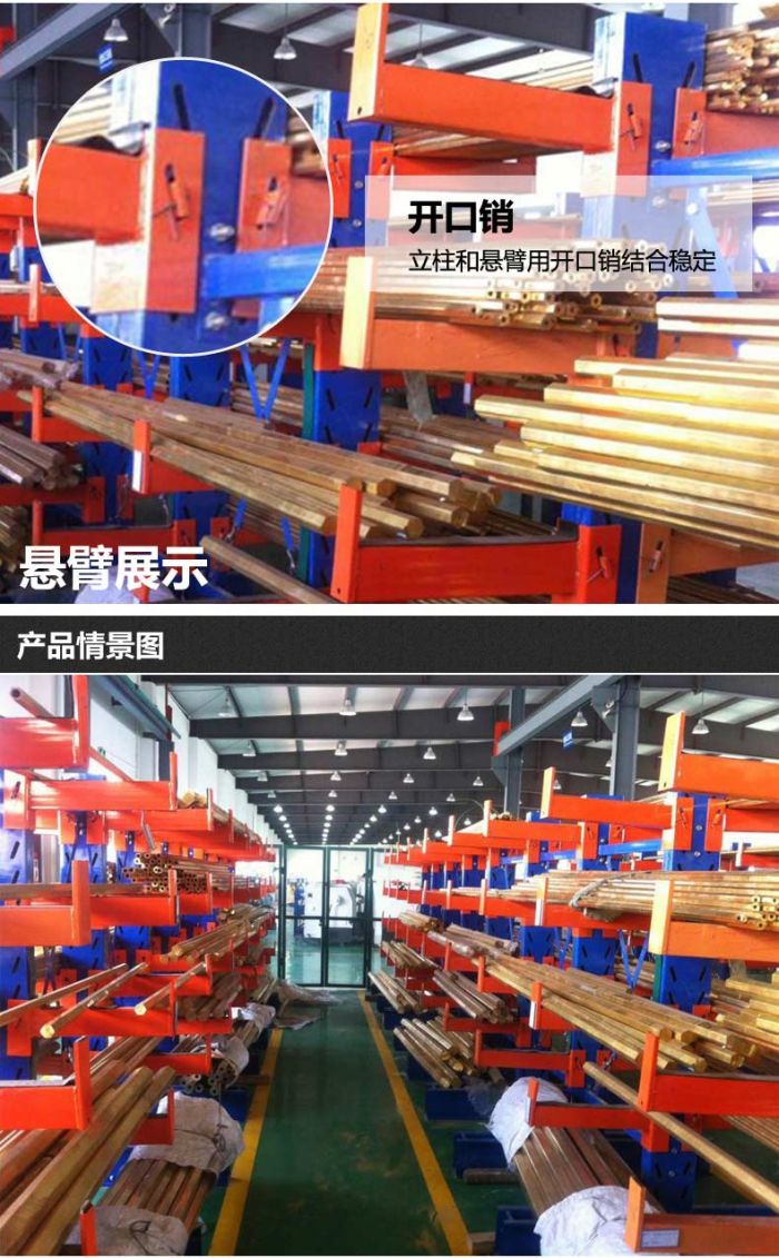 1、懸臂貨架系列全部采用組合式,拆裝,運輸,調節,移動等簡易方便,安全可靠。