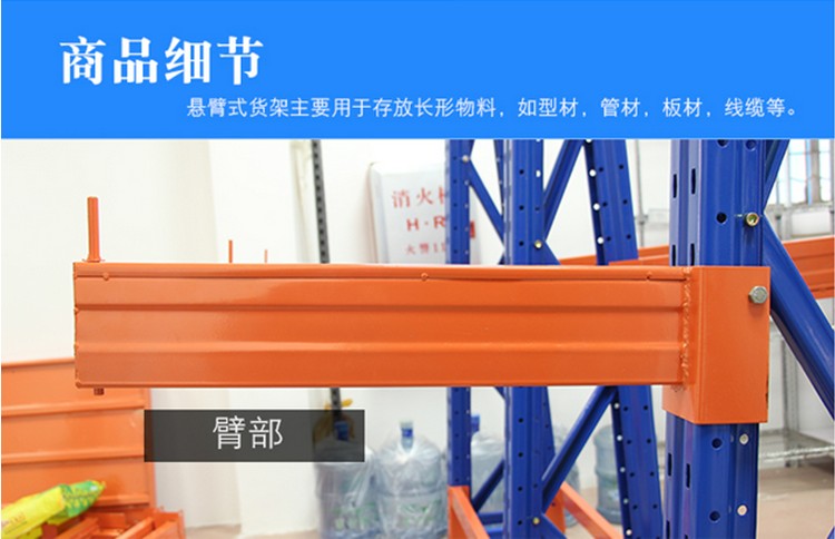 1、懸臂貨架系列全部采用組合式,拆裝,運輸,調節,移動等簡易方便,安全可靠。