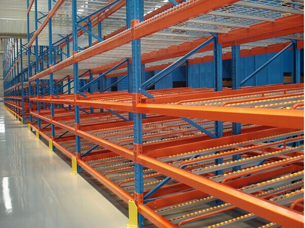 流利式貨架簡稱流利架,是將貨物置于滾輪上,利用一邊通道存貨,另一邊通道取貨。料架朝出貨方向向下傾斜,貨物在中立作用下向下滑動。可實現(xiàn)先進先出,并可實現(xiàn)一次補貨,多次揀貨。流利架存儲效率高。適合大量貨物的短期存放和揀選。流利架廣泛應(yīng)用于配送中心、裝配車間以及出貨頻率較高的倉庫。