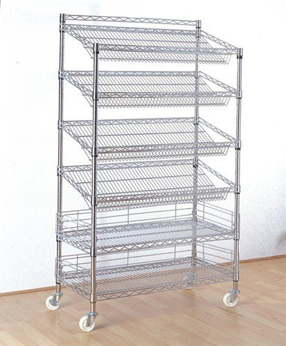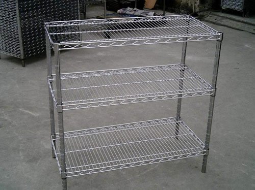 置物架是采用底板及支柱組合而成放置雜物的架子。多由條形支架支撐,加以底板作承托,造型獨特,設計靈巧,裝卸簡便,潔凈亮麗,開放式的設計,令儲物一眼可見。由于置物架在家庭生活中的應用越來越廣泛,很多家庭生活用品種類也越來越多,所以需要一個可以進行整頓和歸置這些生活用品的一個置物架,而置物架的設計非常的簡潔和大方同時又具備靈巧,所以對于歸置生活物品很有作用,關鍵是有利于生活物品能夠很好的取拿不用很費力的尋找。置物架特點 (1)、結構獨特:采用碳鋼鍍鉻網片及支柱組合而成,其獨特的造型結構,設計靈巧,裝卸簡便,潔凈亮麗,堅固的碳鋼鍍鉻網片能促進空氣流通,減少塵埃積聚,開放式的設計,令儲物一眼可見。 。2)、靈活多變:支柱每一英寸有一溝圈,可隨意調節網片高度(每英寸遞增減)?筛鶕䦟嶋H需要隨意組合,可向左右隨意延伸(同一寬度)或向前向后隨意連接(同一長度)。加上各種配件,可組合成各種功能的產品,如加上V型鉤、光身管,可組合成衣架;加上方向把手、輪子,可組合成餐車或推車;加上分隔片、側片,可組合成書架等等。