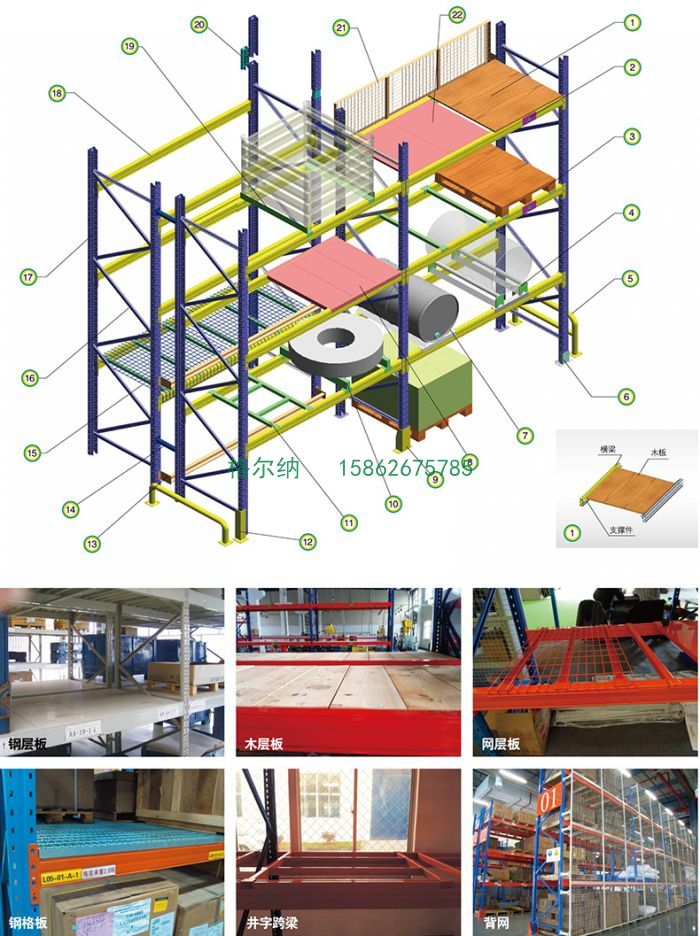 三、結構重型貨架由立柱、橫梁、橫撐、斜撐以及自鎖螺栓組裝而成,可以有效防止螺栓松動后引發貨架失穩;橫梁采用特制的冷軋P型閉口梁;該結構具有簡單可靠、重量輕、承載力強、造價低的特點;柱卡與立柱連接時配有特殊設計安全銷,可以確保橫梁在外力撞擊下不會脫落;層板采用國際上做的條狀層板,具有承載力強、耐磨損、更換簡單、維修成本低廉的特點。