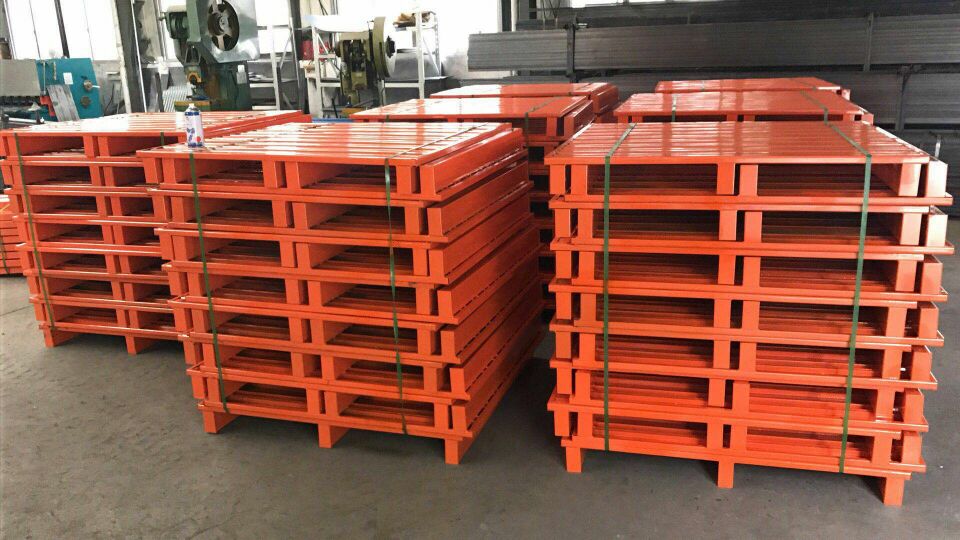 3、鋼制托盤在儲存運輸時,應對貨物進行捆綁包裝固定。